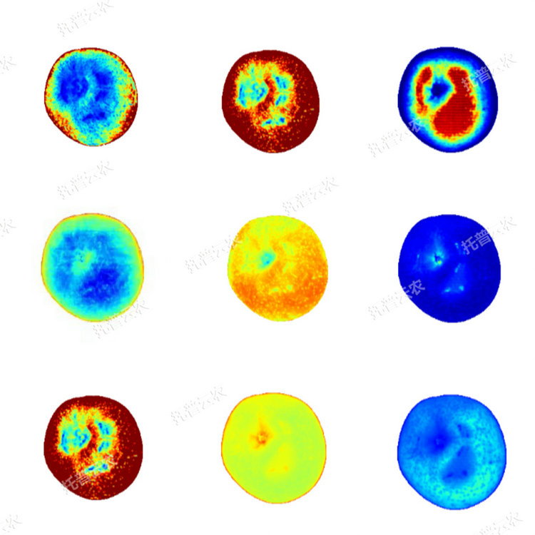 ②內(nèi)部品質(zhì)無(wú)損檢測(cè):內(nèi)置多種高精度預(yù)測(cè)模型(糖度、酸度、成熟度等),通過(guò)高光譜圖像自動(dòng)解析果實(shí)內(nèi)部品質(zhì),快速獲取內(nèi)部糖度、酸度、水分、成熟度等關(guān)鍵指標(biāo)。
